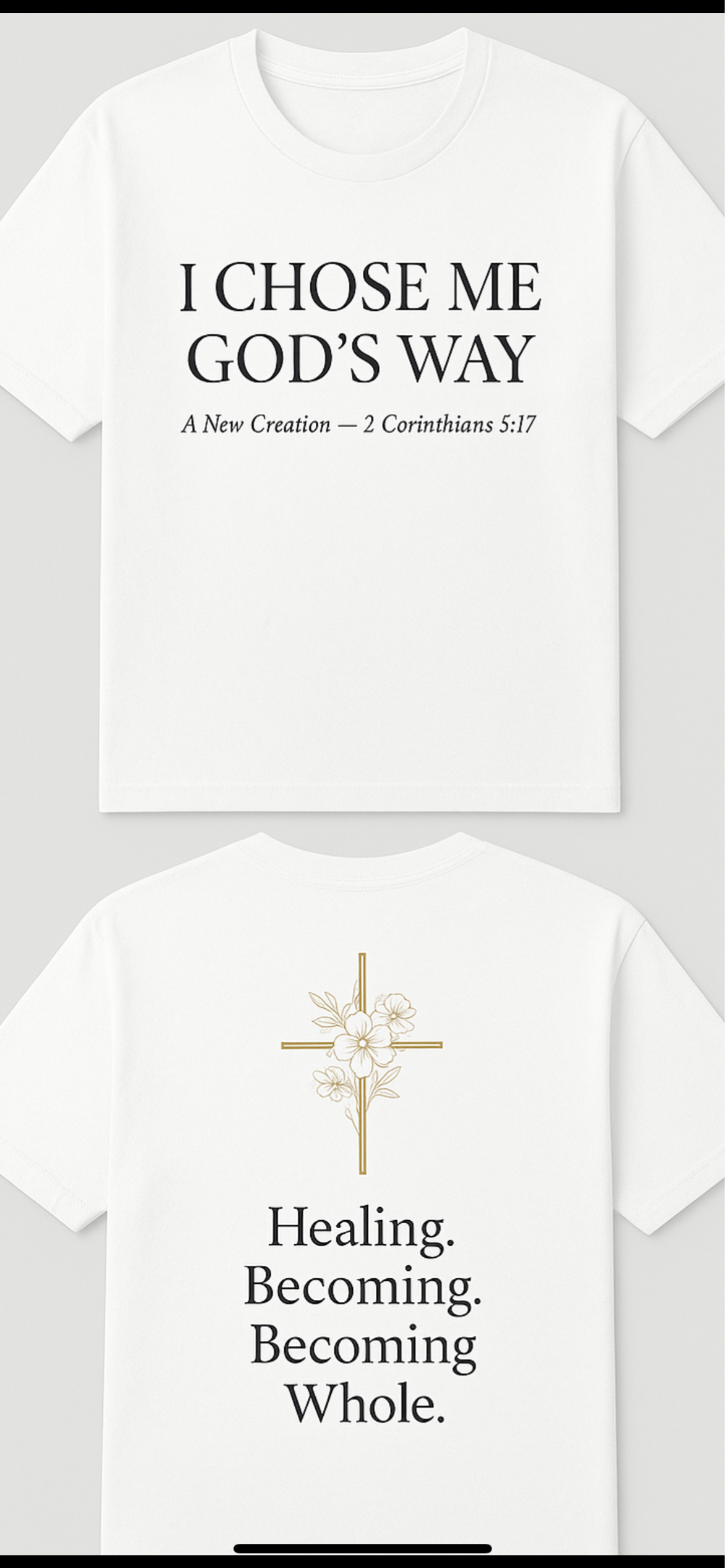 Wear your healing out loud. This beautifully crafted tee blends comfort, style, and purpose - designed for individuals choosing themselves God's way, walking in wholeness, and embracing the life God is restoring. Soft, durable, and meaningful, it's a shirt with a story.